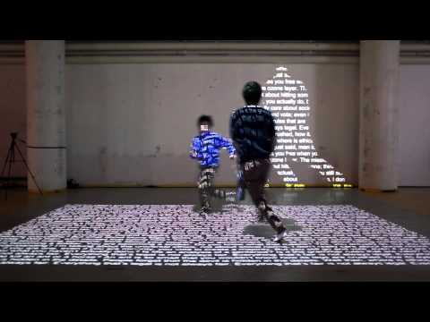 In this piece the participants walk on the ground where images of phrases are being projected, silhouettes of their bodies, with the same phrases but in opposite contrast, are being projected onto the wall at the same time. The words that are in the images are meant to emphasize the slipperiness of morality and ethics with phrases like "Everything that's fair is not always legal" and "Everything that is legal is not always fair."